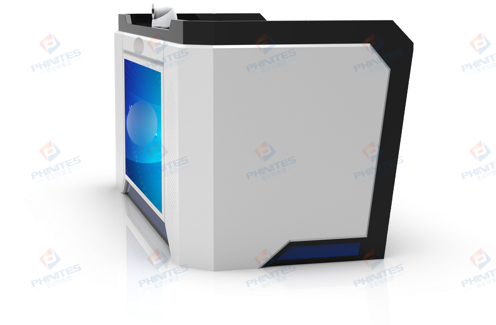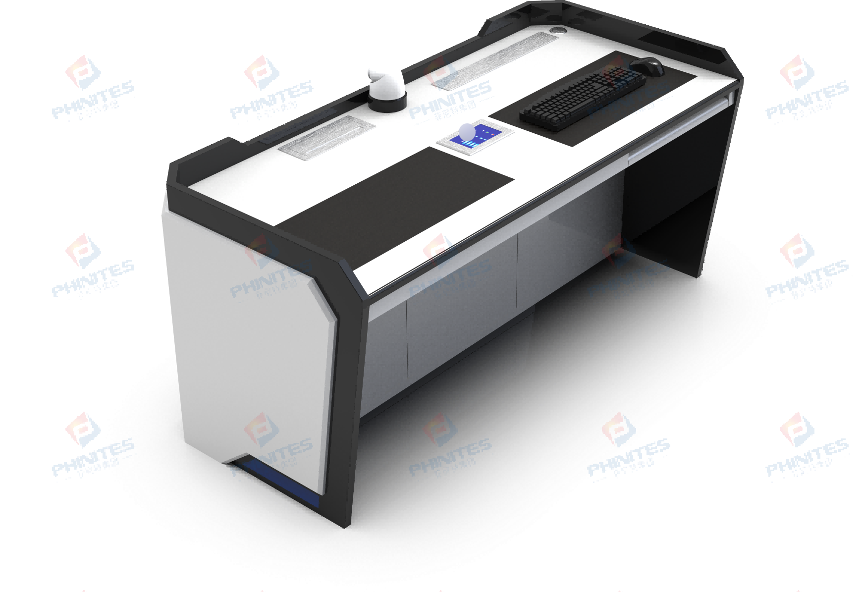 本設(shè)計(jì)以幾何切割為基礎(chǔ)元素,通過精準(zhǔn)的比例分割與流暢的線條組合,呈現(xiàn)出一種極簡而富有張力的視覺效果。幾何元素的應(yīng)用不僅增強(qiáng)了桌子的結(jié)構(gòu)美感,更賦予了其獨(dú)特的藝術(shù)魅力。邊緣經(jīng)過倒角處理,既保證了使用的安全性,又增添了一份層次之美。白色與黑色相搭配的設(shè)計(jì)風(fēng)格,風(fēng)格簡約大氣,藍(lán)色的點(diǎn)綴提升了整體的科技感。人體工學(xué)設(shè)計(jì),確保審訊人員的舒適性,滿足審訊過程的法律和安全要求。智能審訊桌將多種審訊工具和設(shè)備集成于一體,減少了外部干擾和線路混亂,提高了審訊的效率和準(zhǔn)確性。
